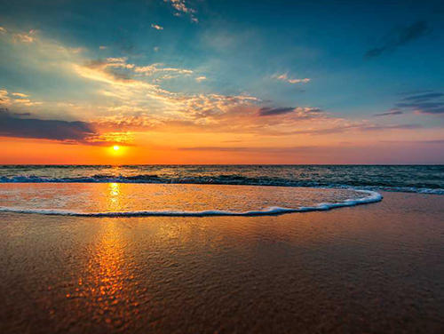 Golden sands and gentle waves, ideal for a peaceful seaside stroll.