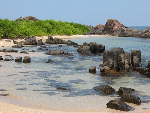 Unique basalt rocks with calm blue waters — perfect for a quick island escape.